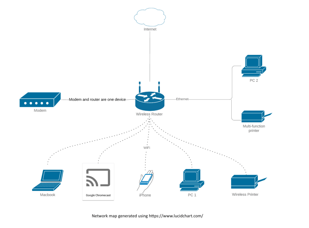 This is a nice clear illustration of a home network, with a good description; including advantagesand disadvantages. Is it your own home network?